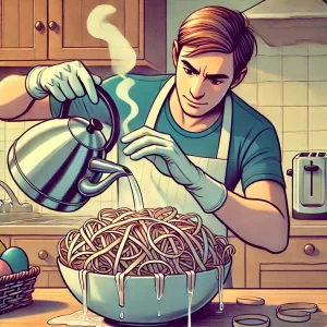簡単なこの方法では、熱湯を利用して伸びたゴムを縮めます。