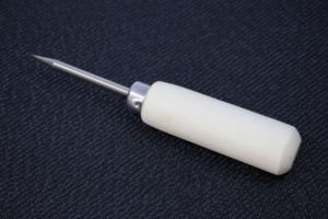 それは「目打ち」です。裁縫に使われる目打ちは、本来穴を開けるために設計されているので、ベルトの穴を開けるのにもぴったりです。